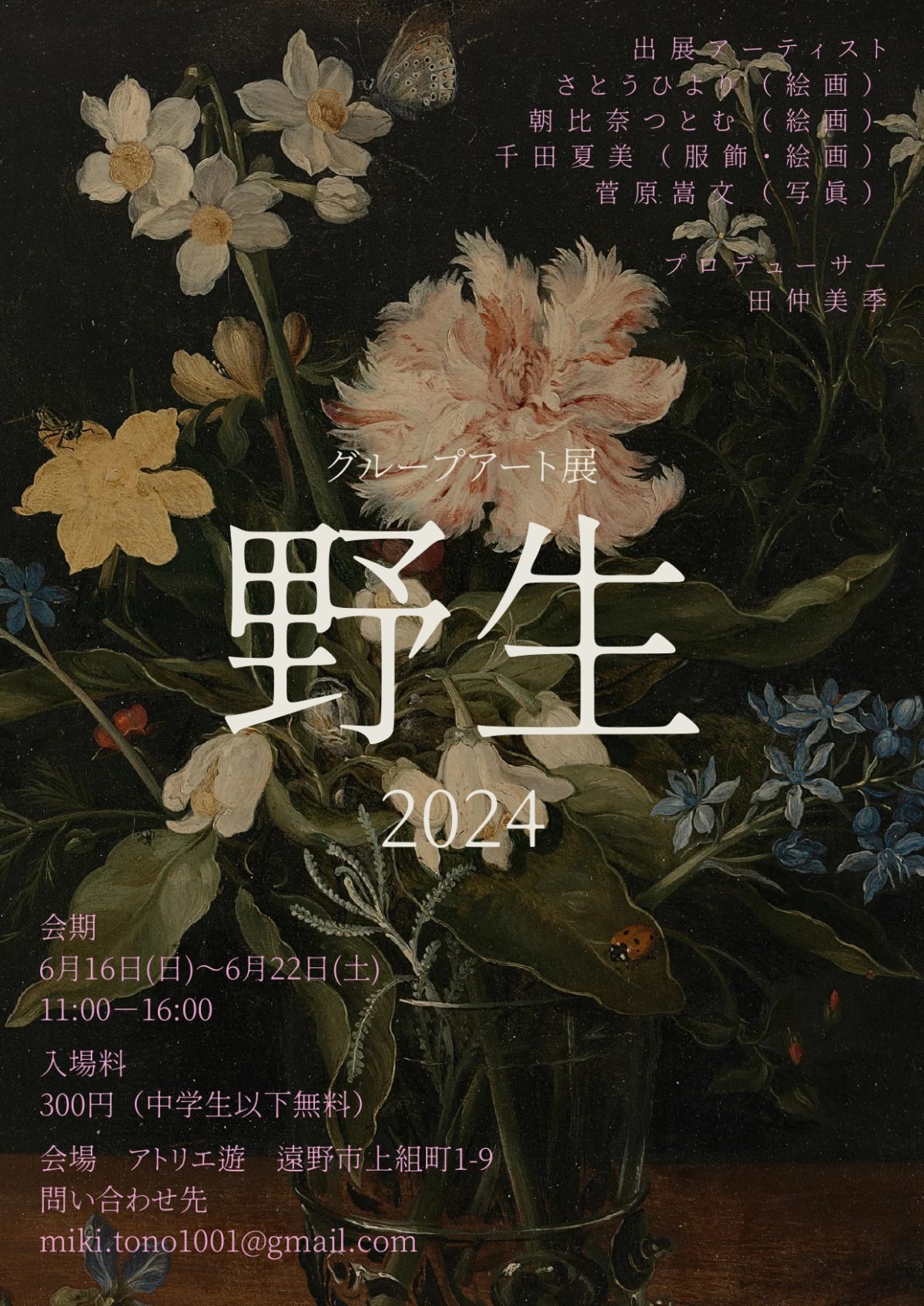 同世代の県内で活動するアーティストたちのグループアート展のプロデューサーを務めました。会場は使われなくなった空き家。元々町中の看板を制作する工房だった場所を仲間たちと協力して片付け、活動のスペースを作りました。「野生」は地方でアートや芸術に触れる機会をつくると同時に、地域で活躍するアーティストたちが自由に表現できる場を生み出したいと考えて企画し、毎年50 名~ 100名の来場者が彼らの作品を鑑賞しに訪れています。